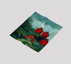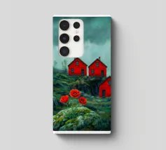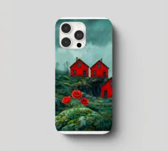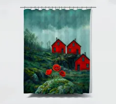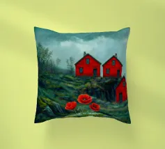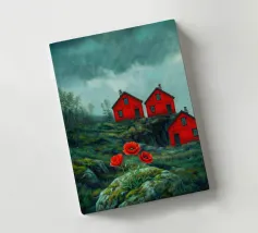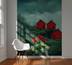 Muri cremisi contro un cielo plumbeo, Tre silenziosi osservatori dove l'erba sospira. Le nuvole temporalesche si addensano, pesanti e basse, Sopra il muschio dove crescono i papaveri selvatici. Un fiore vivido in un mondo grigio, Che guarda i sentieri che portano lontano. Nessun fumo dai camini, nessun passo alla porta, Solo il dolore per ciò che non tornerà più.