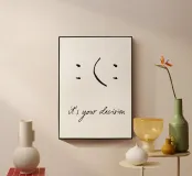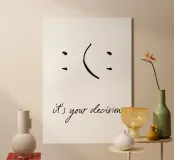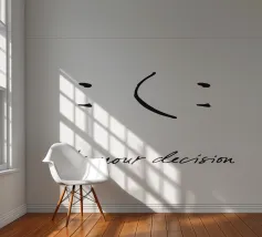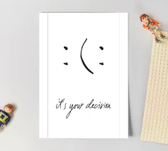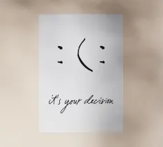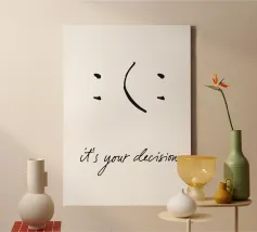Un poster tipografico minimalista con un messaggio chiaro: "È una tua decisione". Un semplice segno diventa una decisione: sorridere o no? Questo design combina umorismo, consapevolezza ed estetica moderna. Perfetto per chi vive in modo consapevole e apprezza il design con un significato. Ideale per uffici, salotti o spazi creativi.