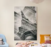 La Torre Eiffel è un punto di riferimento della capitale francese Parigi e simboleggia l'intera Francia in tutto il mondo. Una classica doppia esposizione della torre offre una visione dettagliata dei dettagli architettonici.
