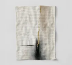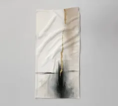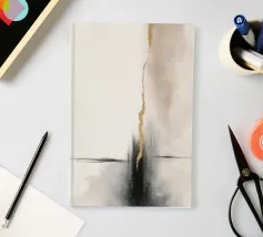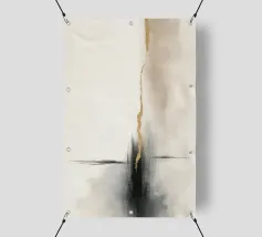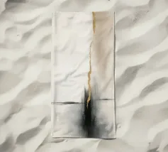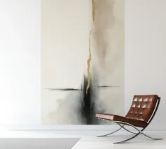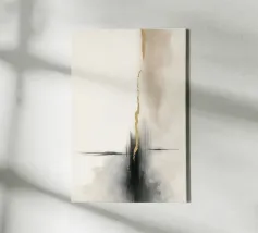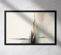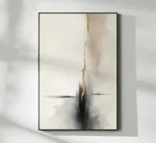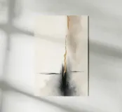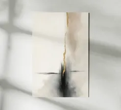 Una sottile linea dorata attraversa delicate tonalità di grigio e beige e incontra un centro scuro e potente. Come un momento di consapevolezza nell'immobilità, l'oro non ha un effetto divisivo, ma illuminante. Quest'opera minimalista rappresenta la chiarezza interiore, la trasformazione e il potere di trovare la luce nel proprio centro. Una dichiarazione poetica e spirituale di equilibrio, profondità e nuovo inizio.