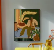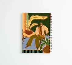 Una donna siede pacificamente nell'abbraccio di una stanza verde, completamente a suo agio. In questo tranquillo momento di tregua, non c'è bisogno di esibirsi o di essere presenti: si permette semplicemente di essere.