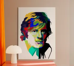 A striking WPAP portrait of The Voice, the legendary rock vocalist known for his powerful voice and emotional depth. Rendered in bold geometric shapes and vibrant contrasting colors, the artwork captures his intense gaze and iconic presence, blending modern pop-art energy with the raw spirit of grunge."