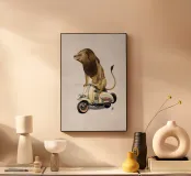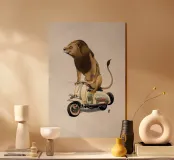 Rispetto a Cecil e alla mia precedente stampa Rooooaaar!, la seconda della serie di grandi felini su piccole moto!!! Il leone e la Lamb-retta!