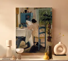 L'opera di Laurits Andersen Ring A colazione (1898) è una scena intima di tranquilla vita domestica, che cattura un momento di semplicità quotidiana con luce naturale e dettagli pacati. Il realismo del pittore danese conferisce calore e sincerità all'ordinario, rendendo l'opera al tempo stesso relazionabile e senza tempo. Perfetto per cucine, sale da pranzo o accoglienti spazi abitativi, questo dipinto aggiunge un senso di familiarità e fascino scandinavo.laurits andersen ring, at breakfast, 1898, realismo danese, arte scandinava, interni domestici, dipinto di vita quotidiana, scena intima, luce del mattino, atmosfera tranquilla, calore familiare, cucina