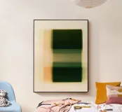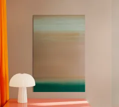 Questa opera d'arte astratta minimalista esplora la profondità e la quiete attraverso strati leggermente sfocati e tonalità tenui della terra. I blocchi di verde intenso sono bilanciati da caldi toni beige e sottili sfumature dorate, creando una composizione calma e solida con un tocco contemporaneo. Le transizioni delicate e la struttura verticale evocano equilibrio, ritmo tranquillo e armonia visiva. Ideale come decorazione murale per interni scandinavi, moderni o minimalisti, quest'opera aggiunge calore, raffinatezza e una presenza serena a qualsiasi spazio.