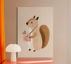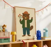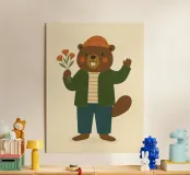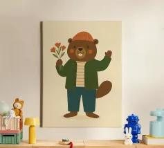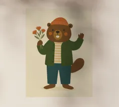 Aggiungete un tocco morbido e caldo al vostro arredamento con questo poster che raffigura un simpatico castoro vestito con un maglione a righe e una giacca verde che tiene in mano un mazzo di fiori. Perfetta per una decorazione murale di ispirazione scandinava, questa illustrazione colorata e moderna si adatterà perfettamente alla cameretta di un bambino, alla stanza dei giochi o alla camera da letto di un ragazzo.