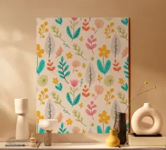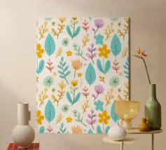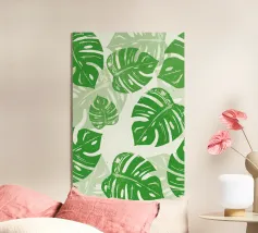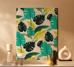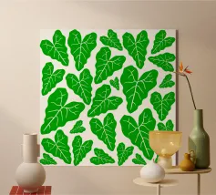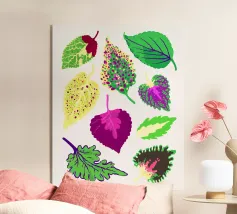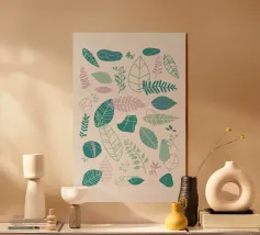 Questa opera d'arte con motivo a foglie mette in mostra la diversità della natura attraverso illustrazioni di foglie dettagliate e stilizzate. L'artista (kathrinmay) ha utilizzato una varietà di mezzi e colori per creare un motivo armonioso e dinamico. Perfetto per gli amanti della natura.