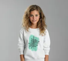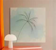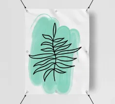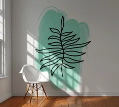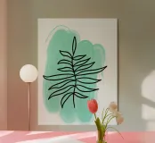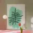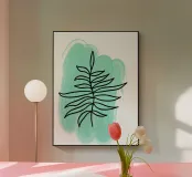 Un semplice disegno nero di una pianta frondosa si trova su uno sfondo di morbide pennellate verde menta. Il design combina forme organiche e arte minimalista per un'estetica rilassante.