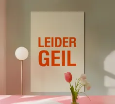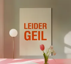 La tipografia incontra la cultura pop: "Leider geil" come poster porta la famosa citazione tedesca su Internet in un design moderno e minimalista. Il grande carattere grottesco su uno sfondo chiaro è un richiamo visivo e un commento umoristico sul mondo. In salotto, in corridoio o in ufficio, questo poster offre il giusto mix di ironia, autoironia e stile. Per gli appassionati di meme, linguaggio chiaro e tipografia forte. Due parole, molti sentimenti: "Leider geil" va al cuore della questione - ironico, onesto, elegante. Il poster combina riferimenti pop con una forte tipografia.
