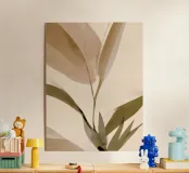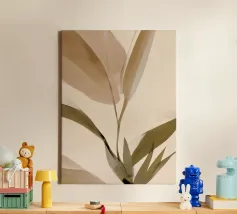 Soothe & Stem è un'elegante astrazione botanica in neutri tenui e verdi oliva profondi, ispirata alla tranquilla resilienza della natura. Le forme delicate e la tavolozza terrosa evocano un senso di benessere, equilibrio e calma, perfetti per gli ambienti termali, gli spazi di meditazione o gli interni radicati nell'armonia naturale.