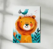 Leone gioioso con uccello