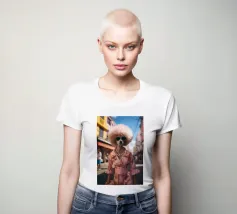 I sampietrini di Lisbona risuonano sotto i passi di Léonie, il cui ampio abito fluttua intorno a lei come una vela nella calda brezza atlantica. Il sole portoghese accarezza le facciate colorate degli edifici centenari, creando un caleidoscopio di tinte pastello che si riflettono sul tessuto setoso del suo vestito. Cammina leggera tra i ripidi vicoli dell'Alfama, il suo profumo si mescola a quello delle sardine alla griglia e del caffè appena macinato. Léonie è l'incarnazione dello stile di vita rilassato, fresco e spensierato di Lisbona.