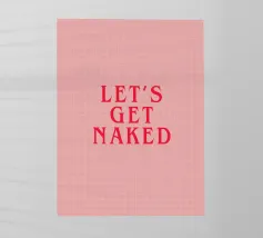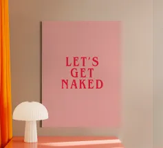 Questa grafica presenta la frase "LET'S GET NAKED" in grassetto e in rosso.