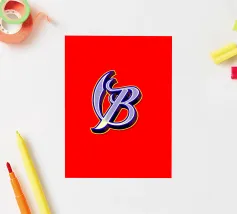 Lettera B in calligrafia colorata e antica.