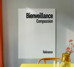 Esprimete i vostri valori di gentilezza, empatia e tolleranza con la nostra ultima collezione. L'esclusivo design "Bienveillance Compassion Tolerance" è disponibile in una varietà di prodotti, tra cui opere d'arte da parete che valorizzeranno i vostri spazi, accoglienti t-shirt da indossare ogni giorno e calde felpe con cappuccio per accompagnare le vostre attività. Ogni prodotto riflette l'impegno verso i valori umani universali. Acquistate questa collezione e partecipate al cambiamento positivo.