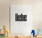 Liebe, love in German. Typography in black and (transparent) white. You can change the background color. Minimalistic typography poster.