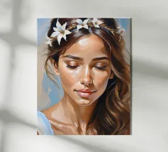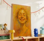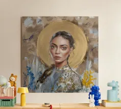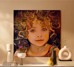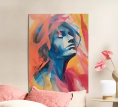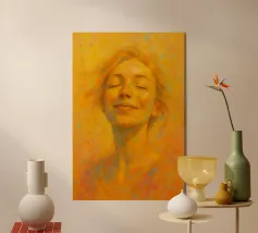 "Lightness Within" è un ritratto luminoso che cattura la gioia pura e radiosa. Una giovane donna, con gli occhi chiusi e sorridenti, è immersa in una luce dorata, circondata da tenui esplosioni di arancione, rosa e blu pastello. Le pennellate espressive e la ricca texture evocano calore, pace ed emozione, fondendo la tecnica classica del ritratto con un'energia fresca ed edificante. Questa stampa in edizione limitata è perfetta per i collezionisti che cercano positività e colore nei loro spazi. Disponibile in esclusiva presso ART.PIECE su Juniqe.