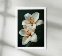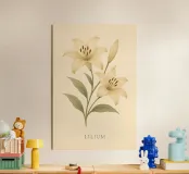 Lilium Botanical è uno studio floreale morbido ed elegante di due gigli in fiore nei caldi toni dell'avorio. Con i suoi dettagli raffinati, il testo serif classico e lo sfondo chiaro, questa illustrazione unisce la precisione scientifica al fascino vintage. La composizione irradia calma, struttura e bellezza naturale: una stampa botanica senza tempo, perfetta per gli amanti della natura e degli interni sereni.