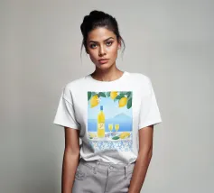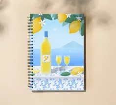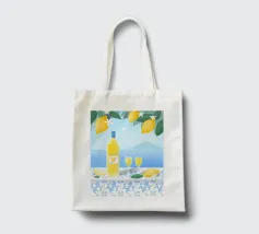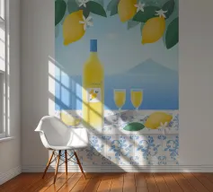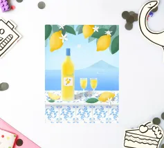 Illustrazione del cocktail italiano Limoncello con vista e limoni.