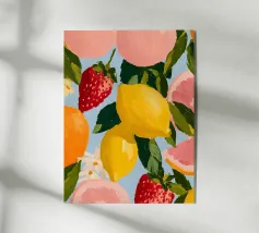 limoni arance agrumi foglie verdi fette di arancia fette di limone frutta elementi botanici accenti floreali petali vibrazioni tropicali tema estivo fogliame motivo naturale agrumi frutta illustrativa colori vivaci freschezza motivo botanico ispirato alla natura