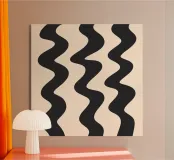 Abbracciate la bellezza della semplicità con questa opera d'arte minimalista caratterizzata da tre linee curve monocromatiche. L'elegante flusso e le dolci curve del disegno creano un senso di movimento ed equilibrio, rendendolo un'aggiunta senza tempo agli spazi moderni e contemporanei. La tavolozza in bianco e nero ne esalta la versatilità, integrandosi perfettamente con qualsiasi stile d'interni, da quello minimal a quello scandinavo e oltre.