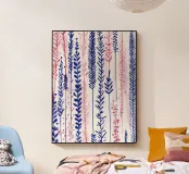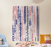 Esplorazione del ritmo verticale e della ripetizione organica, questa composizione ad acquerello presenta steli eretti nei toni del rosso bacca e del blu notte. Le forme semplici, le trasparenze stratificate e l'alternanza delle forme delle foglie creano una cadenza botanica moderna e meditativa.