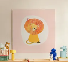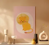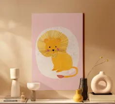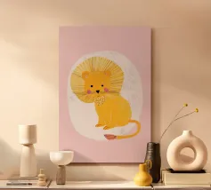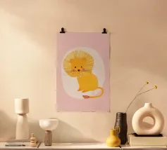 Questa stampa artistica realizzata con cura raffigura un simpatico leone giallo in delicato stile acquerello con una grande criniera brillante. Le guance rosee, i baffi sottili e i dettagli dipinti a mano conferiscono al motivo un carattere caldo e giocoso. Su uno sfondo delicato color rosa antico e naturale, il design minimalista appare allo stesso tempo tranquillo e moderno. Ideale come decorazione murale per la cameretta dei neonati o dei bambini, per una decorazione a tema safari o animali e per gli stili di arredamento scandinavi. Perfetto come regalo per la nascita, per il baby shower o per i piccoli amanti degli animali.
