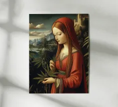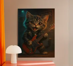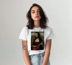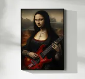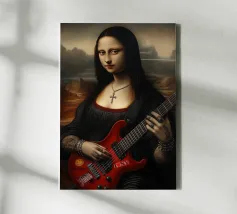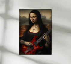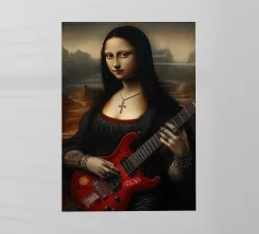 L'iconica Monna Lisa è rinata come rockstar gotica. Con la sua giacca di pelle, la sua chitarra ricoperta di adesivi e i suoi tatuaggi che urlano attitudine pura, ora ci sfida con lo sguardo. Il suo sorriso, più ribelle che misterioso, sembra dire: "L'eternità è molto più divertente con la distorsione".