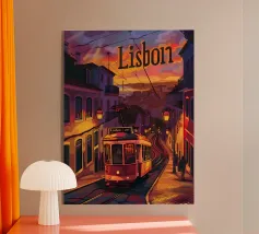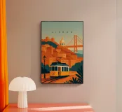 Design minimalista del Portogallo della capitale Lisbona con alcune attrazioni tipiche in stile poster di viaggio stilizzato.