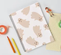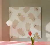 I fantasmini giocosi nei toni morbidi del beige fluttuano creando un motivo stravagante e leggero. I loro tratti semplici e i contorni arrotondati aggiungono un tocco di fascino e divertimento.