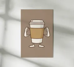 Un cervello viene raffigurato mentre viene riempito di caffè da un bricco, accompagnato da una barra di caricamento sottostante. L'illustrazione suggerisce con umorismo il bisogno di caffè della mente per funzionare correttamente.
