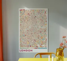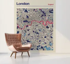 Sentite il ritmo pulsante di Londra con questa moderna opera d'arte cartografica! L'iconico fiume Tamigi serpeggia attraverso l'intricata rete stradale della metropoli britannica in un vibrante rosso, completato da armoniose tonalità di blu. Un'opera elegante per tutti gli appassionati di Londra: urbana, moderna e perfetta per qualsiasi casa o ufficio.
