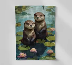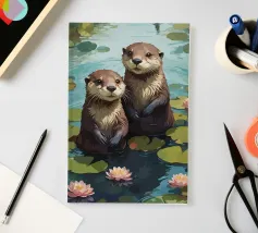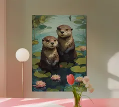 lontre acqua gigli stagno riflessione piante acquatiche animale-ritratto natura animali fiori coppia di lontre zone umide habitat naturale flora fauna acqua calma fauna selvatica ecosistema pelliccia marrone giglio-padiglioni