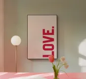 Segno d'amore, arredamento rosa, citazione minimalista, regalo di anniversario, arte da parete per matrimonio, decorazione per San Valentino, poster rosa arrossato, semplice appeso alla parete, arredamento chic per la casa, tipografia moderna, arte da parete alla moda, arte rosa pastello, decorazione da parete per la camera da letto, aggiunta alla parete di una galleria.