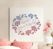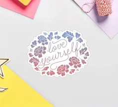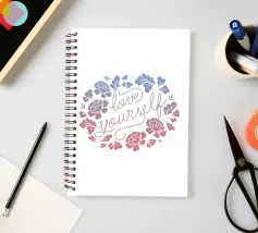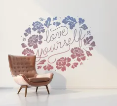 Selfcare Citazione lettering con fiori e foglie in rosa e blu degradee