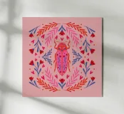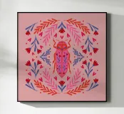 Un'illustrazione stravagante e commovente con un affascinante insetto circondato dall'amore. Questo disegno dolce e stravagante unisce la giocosa arte degli insetti a un tocco romantico, rendendolo perfetto per l'arredamento di San Valentino o per aggiungere un pizzico di simpatia a qualsiasi spazio.
