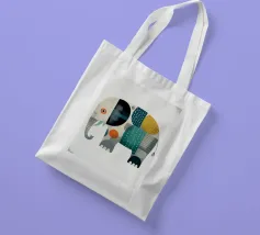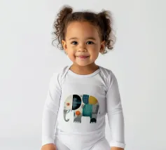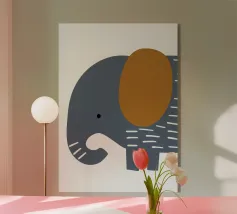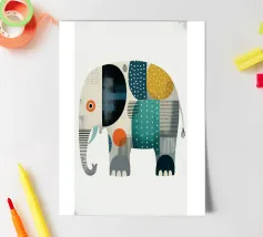 Elefante disegnato con amore in stile patchwork, con motivi allegri e colori tenui. Un motivo affascinante per piccoli e grandi avventurieri.