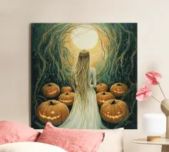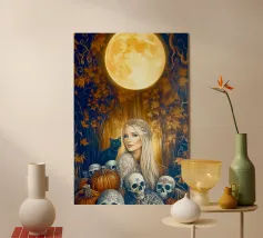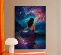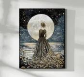 Questo quadro mostra una scena calma e pacifica: una donna si trova in posizione pensierosa in riva al mare, mentre la tenue luce della luna gioca intorno a lei. L'intera atmosfera del quadro irradia una certa malinconia e allo stesso tempo una forza interiore.