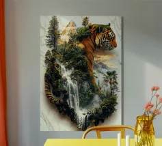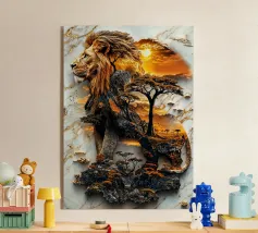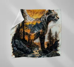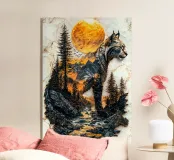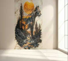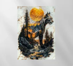 Una maestosa lince, guardiana della natura selvaggia delle montagne, si erge a sentinella sotto il bagliore dorato del sole al tramonto. La sua forma, intrecciata con l'aspro paesaggio, simboleggia il potere senza tempo della natura. Questo protettore della terra veglia sul suo dominio con incrollabile devozione.