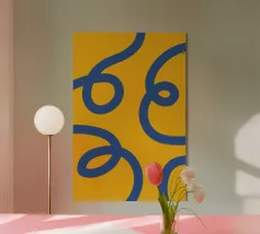 Bellissime scritte nelle tonalità del giallo e dell'arancione, accentuate da rilievi blu su uno sfondo morbido e delicato.