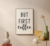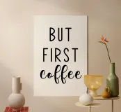 Iniziate bene la giornata con la decorazione da parete "But First Coffee". Perfetto per gli amanti del caffè, questo pezzo giocoso ed elegante porta un'atmosfera divertente e caffeina in cucina o nell'angolo del caffè. Un promemoria quotidiano del vostro rituale mattutino, un ottimo regalo o un'aggiunta a qualsiasi spazio a tema caffè.