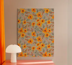Motivo floreale in stile retrò nei caldi colori del senape.