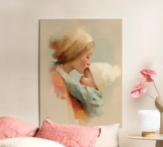 Oggi la "Madonna con Bambino" non è solo un simbolo religioso, ma anche un'espressione di amore, cura e speranza. Un bellissimo e spartano dipinto ad acquerello per la vostra parete.