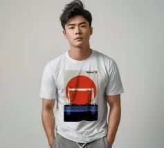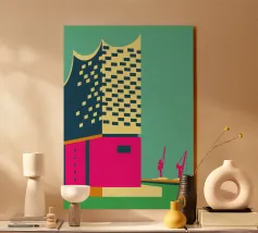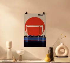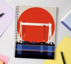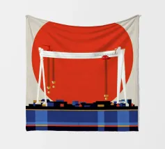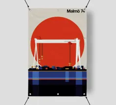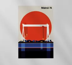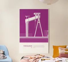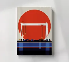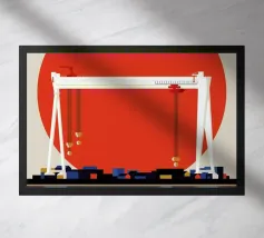 Questa immagine raffigura l'iconica gru del cantiere navale della città. Il design geometrico e i colori vivaci la rendono perfetta per gli appassionati di design scandinavo e di arte di ispirazione industriale.
