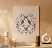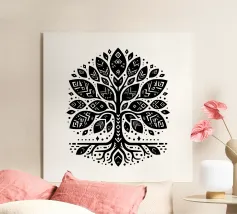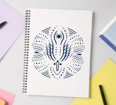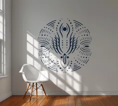 Immerse yourself in the sacred symmetry of the "Sacred Mandala" illustration, a boho-spiritual design featuring intricate, flame-like motifs and eye-shaped accents in crisp white on a deep navy backdrop. Inspired by ancient mandalas and spiritual harmony, this artwork weaves together organic, circular patterns with delicate details, accented by subtle golden hints that evoke divine serenity.