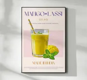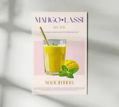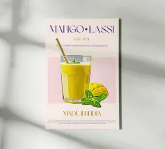 Su uno sfondo neutro color crema, questa elegante illustrazione della famosa bevanda indiana mango lassi aggiunge raffinatezza a qualsiasi cucina, bar o zona pranzo. Questo design minimalista ma informativo accenderà la conversazione in qualsiasi ambiente, aggiungendo un tocco raffinato al vostro ambiente.