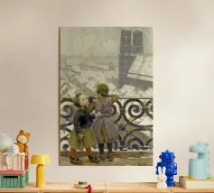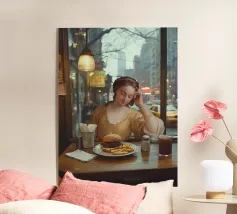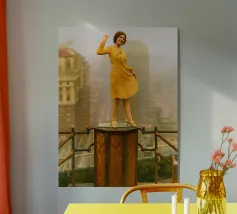 "Manhattan View" è un collage digitale che fonde la fotografia contemporanea con la grandiosità della pittura neoclassica. In quest'opera, diverse belle donne dell'epoca sono ritratte in cima a un grattacielo, affascinate dalla vista abbagliante di tutta Manhattan. I loro gesti e le loro espressioni interagiscono armoniosamente con l'ambiente urbano, evocando l'eleganza e l'eccitazione di un'epoca passata e celebrando al contempo la bellezza e il dinamismo della città moderna."