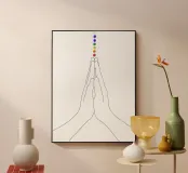 Una versione diversa dell'originale opera d'arte della linea Prayer Hands, che include la rappresentazione dei sette chakra: lasciate che serva da promemoria vicino al vostro tappetino da yoga, allo spazio dell'altare sacro, all'ufficio, al salotto, alla camera da letto o alla stanza del vostro bambino.