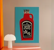 Una simpatica illustrazione di un condimento a base di sciroppo d'acero, con un simpatico musetto a dargli vita.