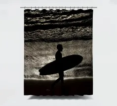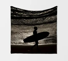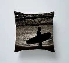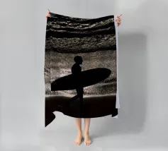 Surfista al tramonto, spiaggia Hilton, Tel Aviv, Israele.